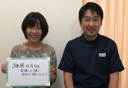 今までなかなかできなかった1日2ℓの水分摂取や7時間睡眠も無理なく出来る様になってきました。お肌もスベスベ、ツヤツヤになり身体も軽く、良いことばかりです。最後のダイエット…と思い〝耳つぼダイエット〟を選んで本当に良かったです。院長先生もはる美先生もいつも明るく笑顔で何でも話しやすく、とても楽しかった3か月でした。次回の人間ドックがとても楽しみです。本当にありがとうございました。